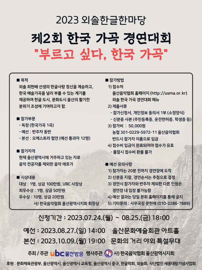 2023 외솔한글한마당 제2회 한국 가곡 경연대회 "부르고 싶다, 한국 가곡"