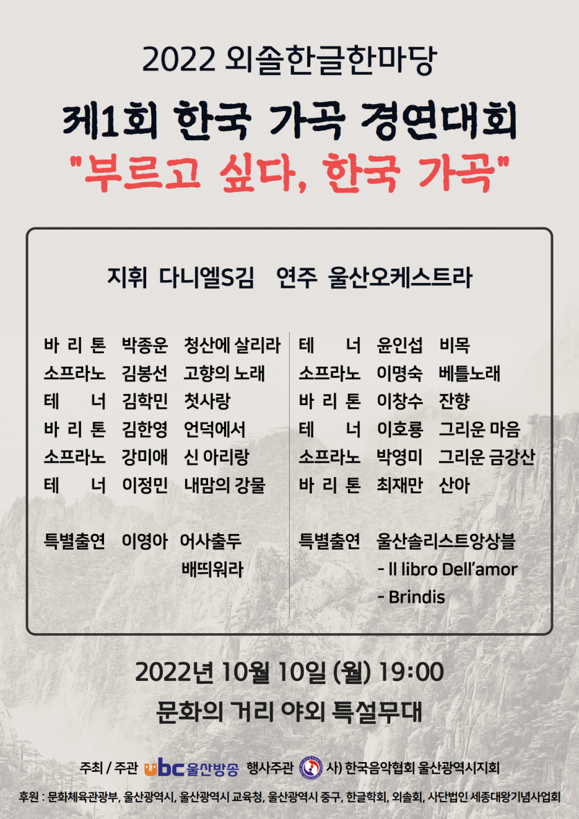 2022 외솔한글한마당 제1회 한국 가격 경연대회 "부르고 싶다, 한국 가곡"